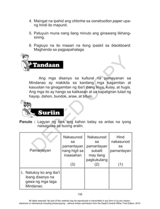 Naipagmamalaki ang mga ipinintang larawan ng mga dalubhasang pintor ng bayan II. Iba naman ang ginamit na istilo ni Vicente Manansala ang pagguhit ng_____. Gumamit ng ibat-ibang disenyo upang magkaroon ng sariling pagkakakilanlan.