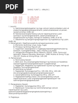 1st Lesson Plan In Sining Yunit 1 Aralin 1 8 Pdf
