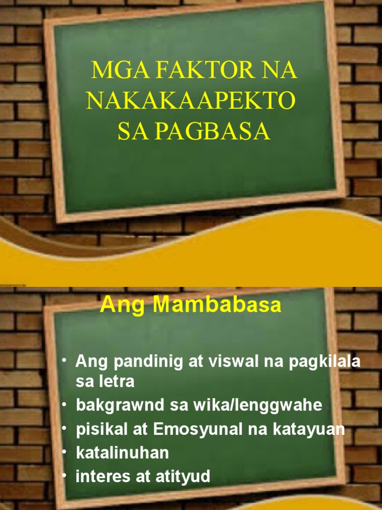 GEFILI A59 Pangkat 9 Ipinasa kay. ARBISON Jame DE CASTRO Marie Alexis P. Click here to get an answer to your question Salik na nakakaapekto sa kasanayang pagbasa ng mga mag aaral tugon sa pagpapababa ng bilang ng mga non reader jaybhavsar7073 jaybhavsar7073 19032020 History Secondary School.
