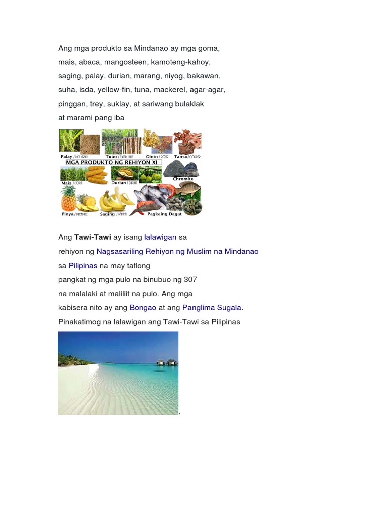 Ang Mga Produkto Sa Mindanao Ay Mga Goma Pdf