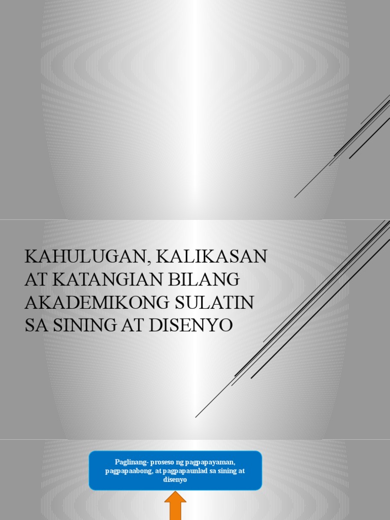 Tamang sagot sa tanong. AT KATANGIAN BILANG AKADEMIKONG SULATIN SA SINING AT DISENYO Paglinang- proseso ng pagpapayaman pagpapaabong at pagpapaunlad sa sining at disenyo. Batayang kaalaman sa sining at disenyo Pagpapakahulugan.