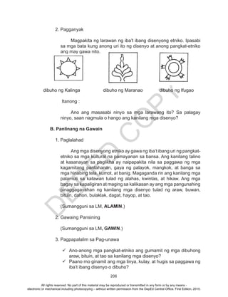 May isang tahanang malakit marikit Langit ang bubungan at lupa ang sahig. Ang mga disenyong etniko ay gawa ng ibat ibang uri ng pangkat-etniko sa mga kultural na pamayanan sa bansa. Ano ang karaniwang ginagamit sa pagguhit at pagleletra.